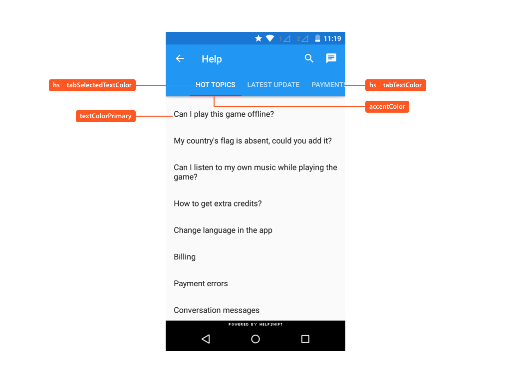 | hs__tabTextColor | Color of the text in a tab on FAQ section pager screen. |