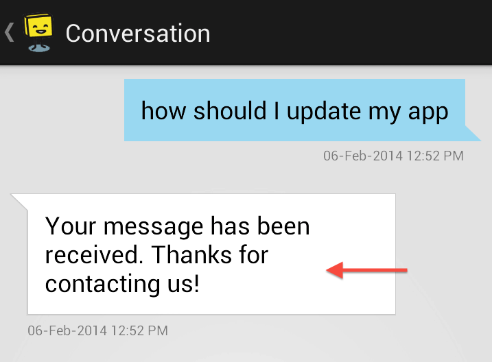 hs__conversation_started_messageText for auto-response message when user starts a new conversation Your message has been received. Thanks for contacting us!