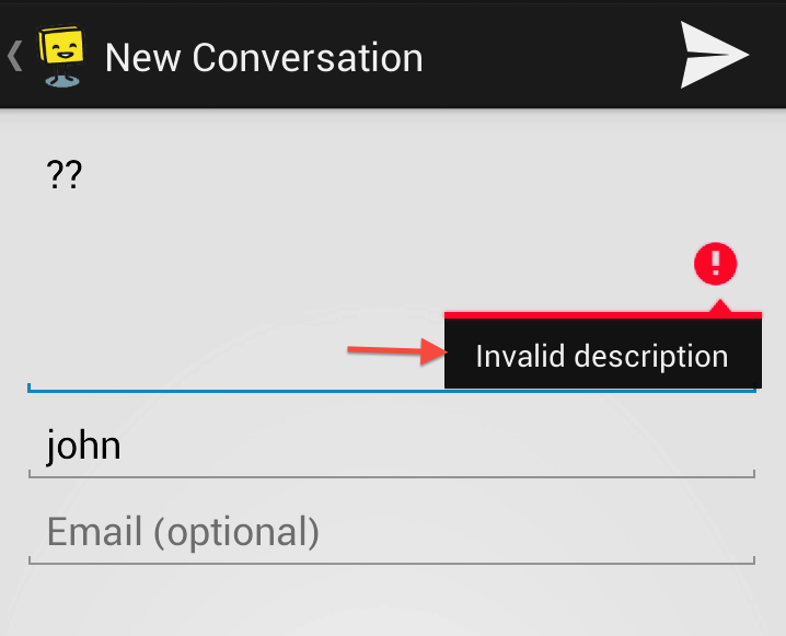 hs__invalid_email_errorMessage for AlertDialog that shows when the user leaves the email field empty in new conversation screen.Please enter a valid email