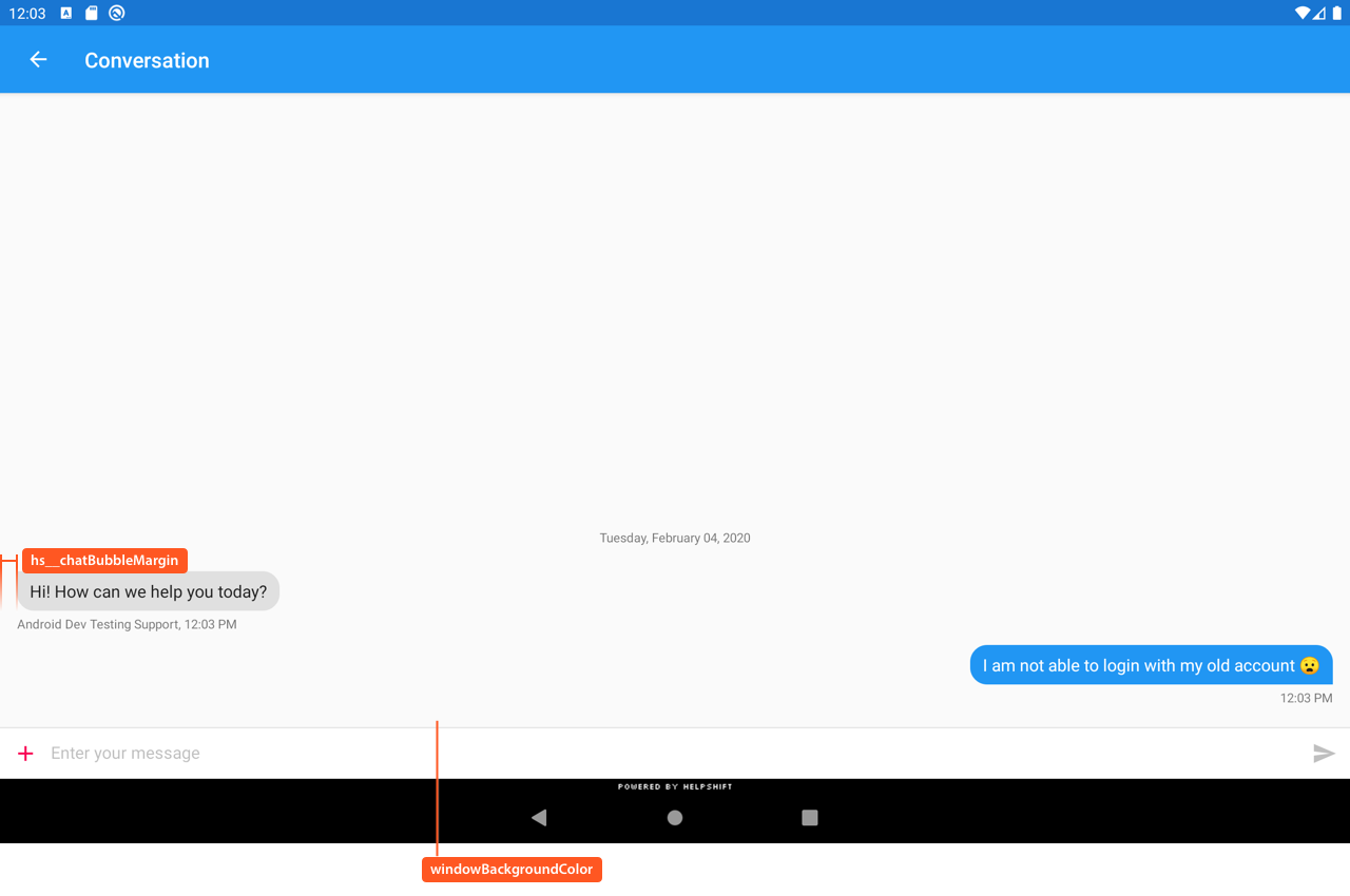 You can customize Android's styleable attributes along with Helpshift's styleable attributes.